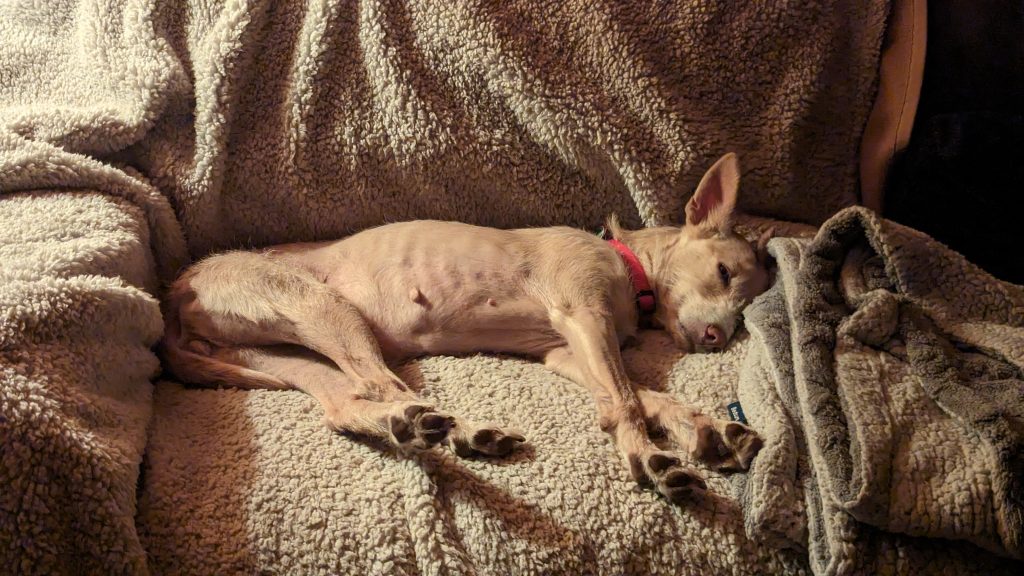 Tag 59 – 25.09.2023 Lucy hatte keine gute Nacht. Wir haben nur ein paar Stunden geschlafen. Sie hat die Eukanuba-Hundedecke