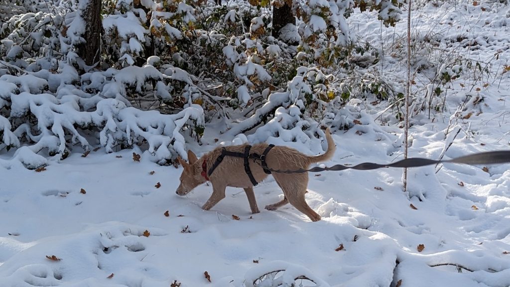 Es schneit und es ist kalt. Ich lasse Lucy trotzdem raus in den Garten, das ist nun langsam ein Ritual.