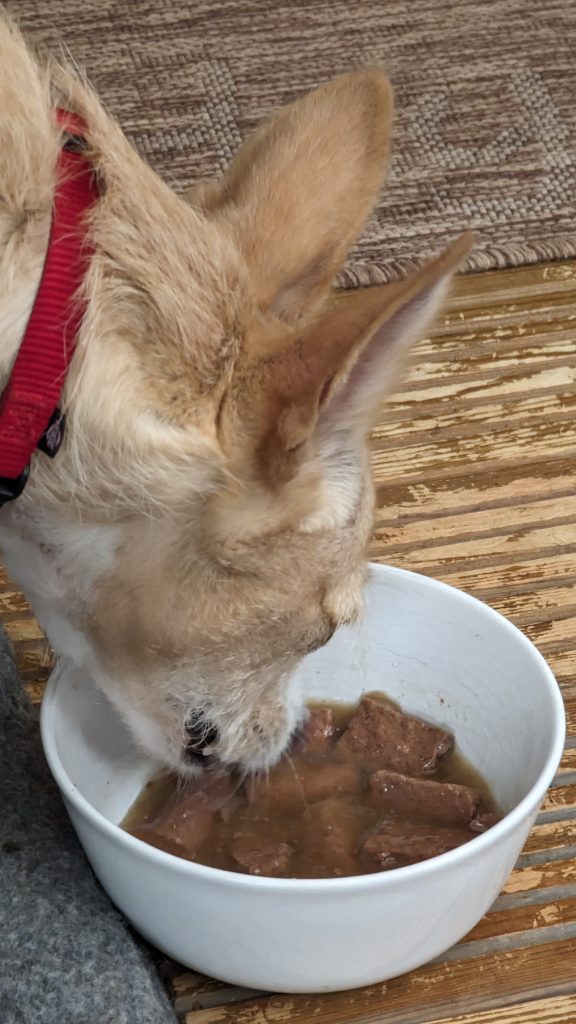 Der Spaziergang läuft auch nicht so gut. Es ist ziemlich windig und erwähnte ich es schon – auch einen Windböe macht ihr Angst. Zu Hause angekommen will sie auch ihr Futter nicht anrühren (und das, wo sie separat nichts säuft).